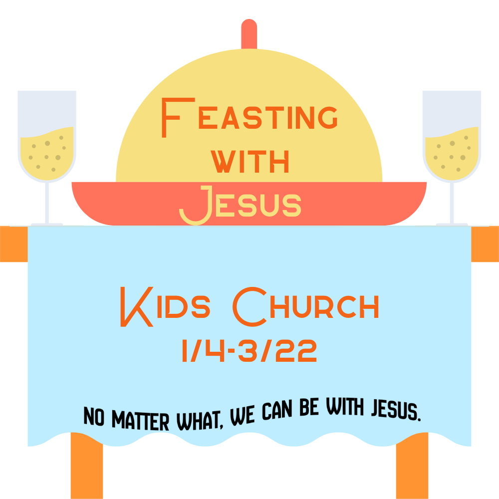 We put a high value on family time together in church. That’s why we create kids bulletins and provide praise packs for our kids to use during worship. We expect our elementary kids to be in church with their families and create intergenerational relationships with those around them. For our pre-K kids, we know sitting through worship for over an hour can be especially difficult. After participating in the first few minutes of worship, we invite our kids 2 years – pre-K to join us in Kids Church! There, you can expect to sing, dance, craft, snack, hear a story from the Bible, play games, and more! We do our best to provide a learning environment most conducive to our youngest kids. From 01/04 – 03/22, 2026, we will be learning about the times Jesus gathered with people around food through a series called “Feasting with Jesus.” We’ll hear the stories of the wedding at Cana, Jesus feeding 5,000, Zacchaeus, Mary and Martha, harvesting grain, the Last Supper, the woman at the well, the parable of the great banquet, the Road to Emmaus, and Jesus feeding 4,000.